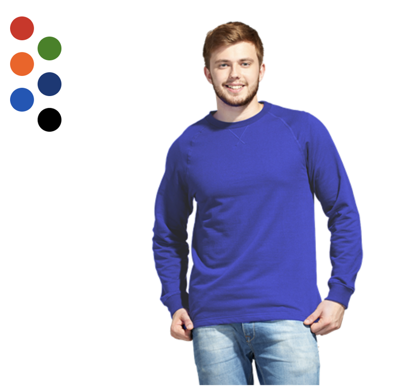 Толстовка с круглым воротом и рукавом реглан. Ворот и манжеты из эластичной резинки-рибаны. По горловине фигурная отстрочка. Боковые разрезы по низу изделия.