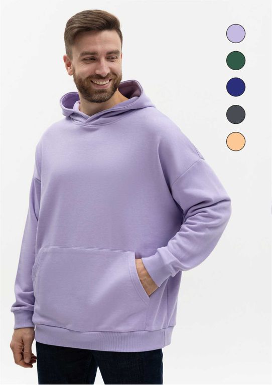 Универсальная толстовка свободного силуэта с капюшоном комфортной глубины, спущенной линией плеча и глубоким карманом-кенгуру. Манжет и низ изделия оформлены широкой эластичной резинкой.