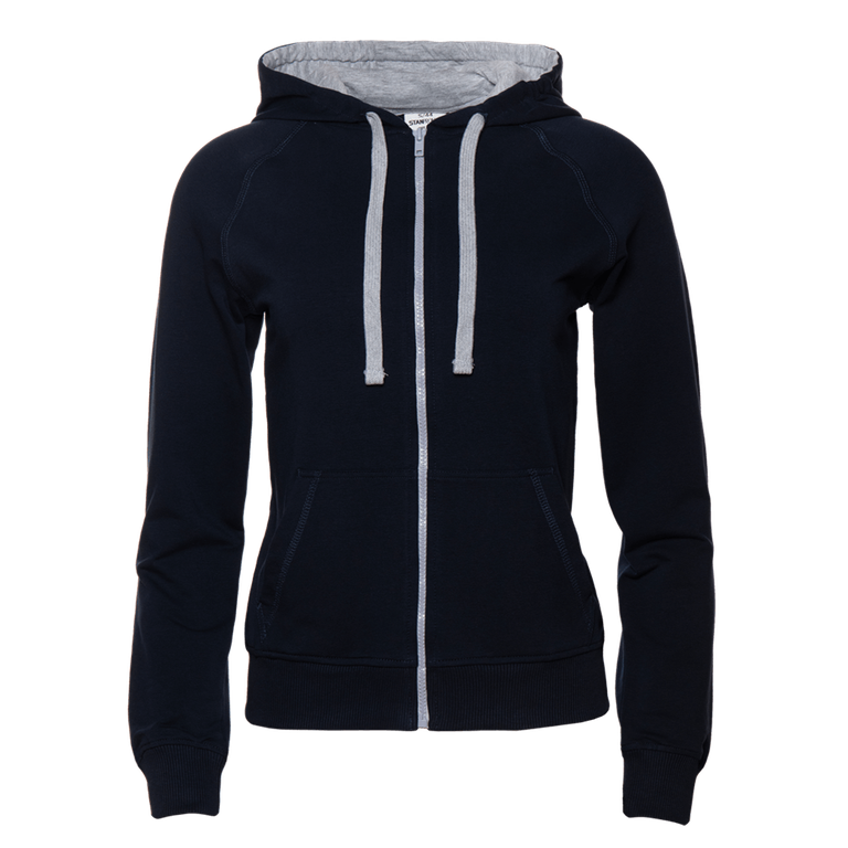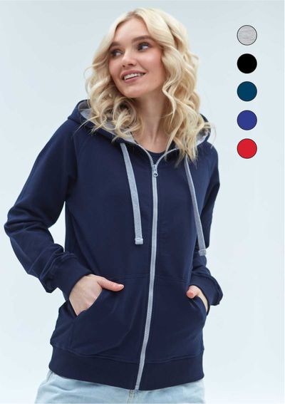 Женская олимпийка прямого силуэта с капюшоном комфортной глубины, рукавом-реглан, накладным карманом и застежкой на контрастную молнию. Капюшон дополнен шнурком для регулирования прилегания, манжет и низ изделия оформлены широкой эластичной резинкой.